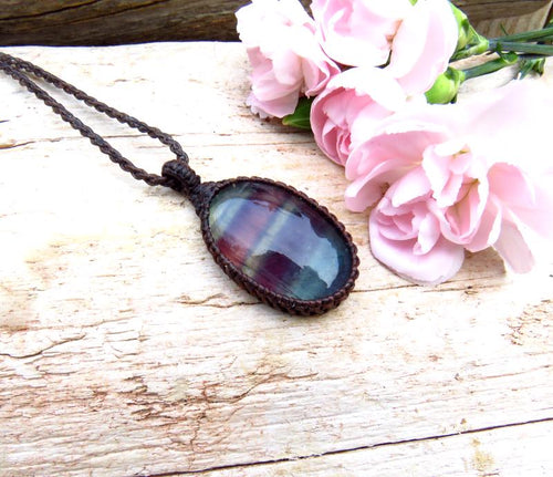 🌈FLOW WITH YOUR TRUTH 🌈Lovely Fluorite macrame necklace - gorgeous banding in a rainbow colors - another amazing gift from Mother Earth ! ~ : )