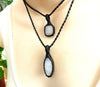 This listing is for TWO spectacular quality Rainbow Moonstone macrame necklaces - a stunning pair! When held at different angles, these beauties flash a gorgeous, colorful glow - Moonstone makes a great gift for the important WOMAN in your life! These pairs can be worn stacked/layered together or worn separately - a lovely idea for best friends and soul-mates - and also a great size for kids! *You will receive BOTH (2) pieces with the cord length of your choosing for each (if you wish for different lengths, please indicate in the 'notes to seller' box in your cart or send us a message! )