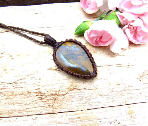 Tiger Iron macrame necklace - Gorgeous layers of golden tigers eye and shiny, metallic hematite - Deep and rich brown -the patterns resemble the grains of an ancient tree ✨