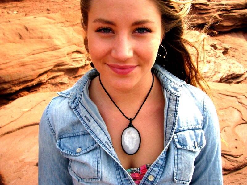 .Gorgeous Agate Geode crystal necklace - Lovely soothing gray Agate with a large twinkling crystal cavern. So pretty ! You will receive the exact stone in photos #2-8 and the video. *model is wearing a different, but similar, Agate druzy necklace.