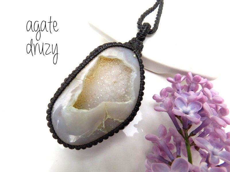 Materials: agate, gemstones, stones, semiprecious stones, agate druzy, agate geode, waxed cord.