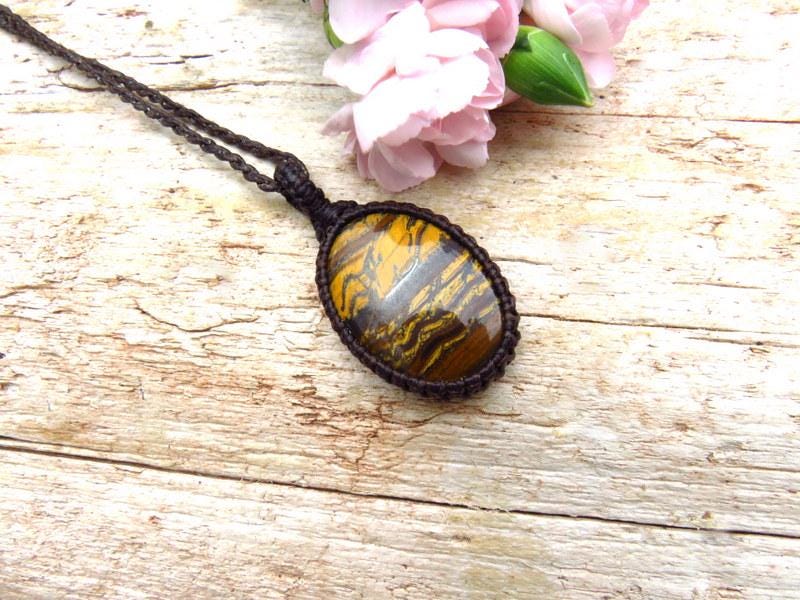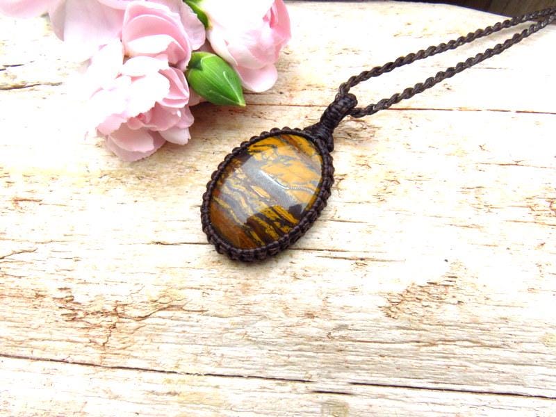 Materials: tiger iron, tiger eye, tigers eye, gemstone, waxed cord.