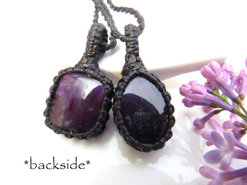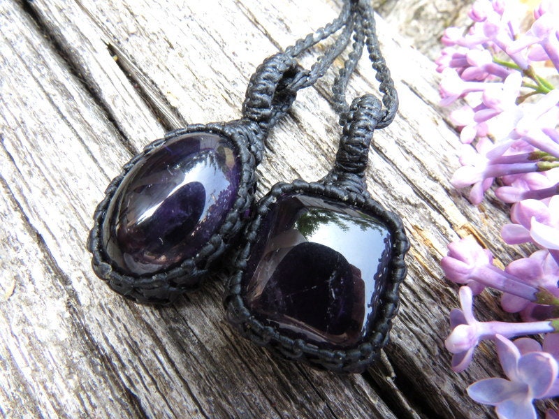 This listing is for TWO lovely 💜Amethyst💜 macrame necklaces - beautiful, deep purple Amethyst crystals - superb quality ! These pairs can be worn stacked/layered together or worn separately - also a lovely idea for best friends and soul-mates - and also a great size for kids! To achieve the layered look, the cords must be of different lengths. **In the listing photos, we are showing the set with the 18 inch and 22 inch cords. If you wish to have the same length of cord for both crystal necklaces, then please indicate that in the notes to seller box at checkout.