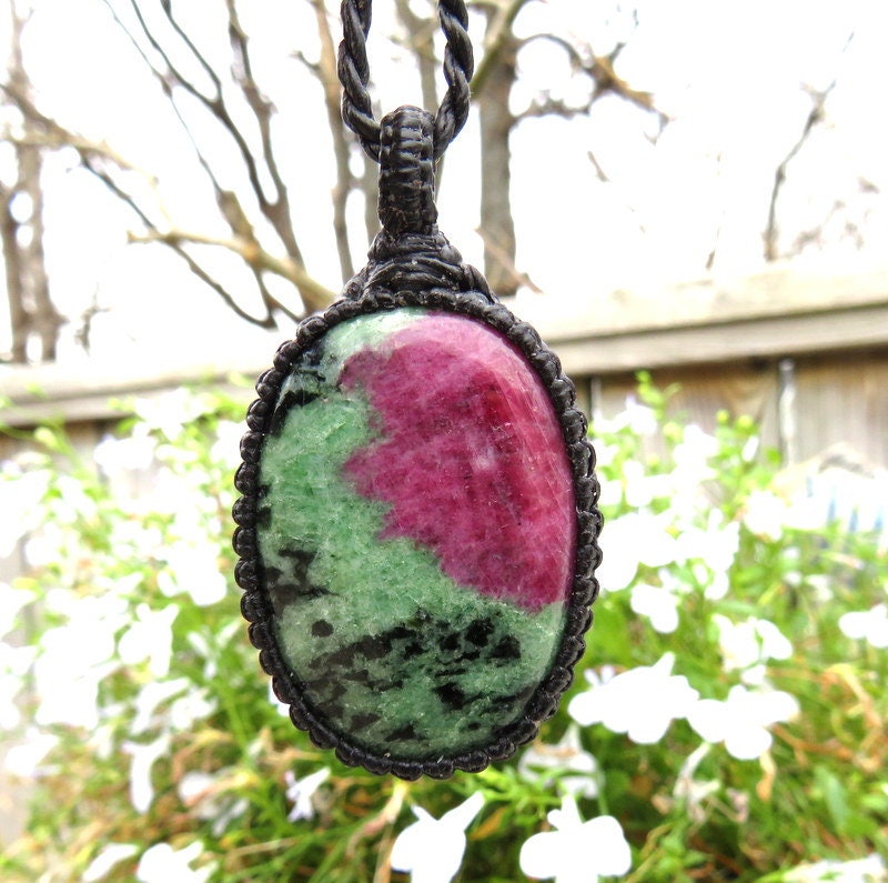 🌹VITALITY & PASSION - GRIEF WORK AND ACCEPTANCE🌹Very pretty Ruby Zoisite gemstone macrame necklace - lovely, deep fuchsia ruby in green Zoisite - a beautiful find ! *Minor, natural imperfections - You will receive the exact stone in photos #1 - 6