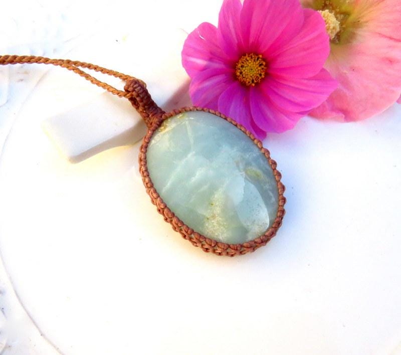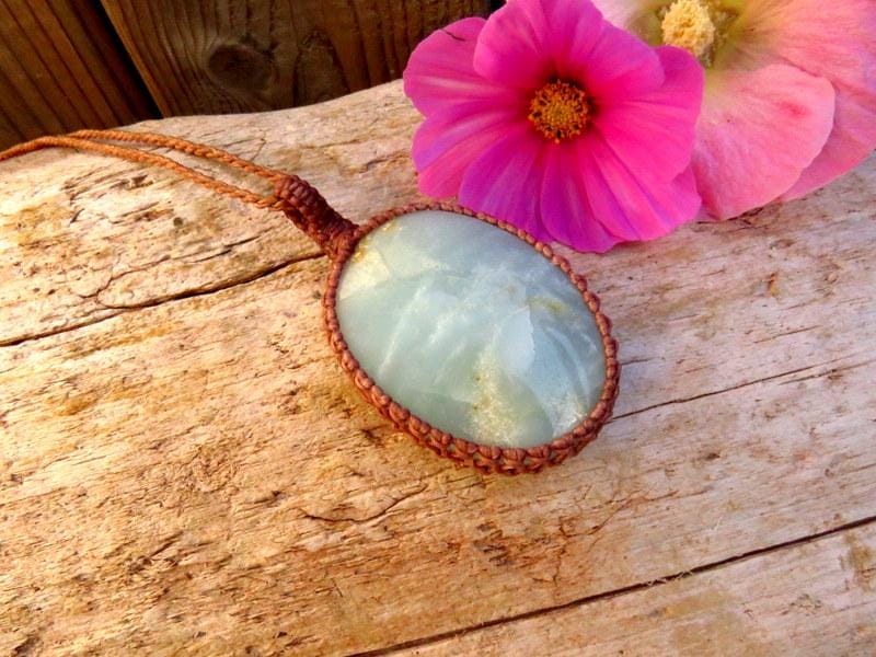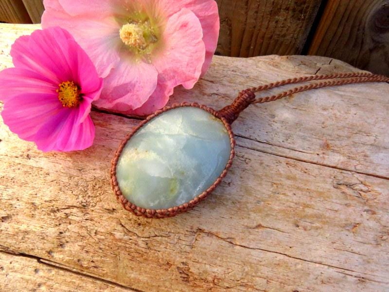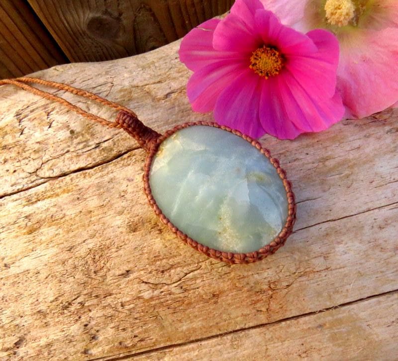 Beautiful Caribbean Calcite macrame necklace - WOW 😍 A combination of bluish-green Calcite & brown & white Aragonite - the color is a gorgeous aqua-green. Stunning find !
