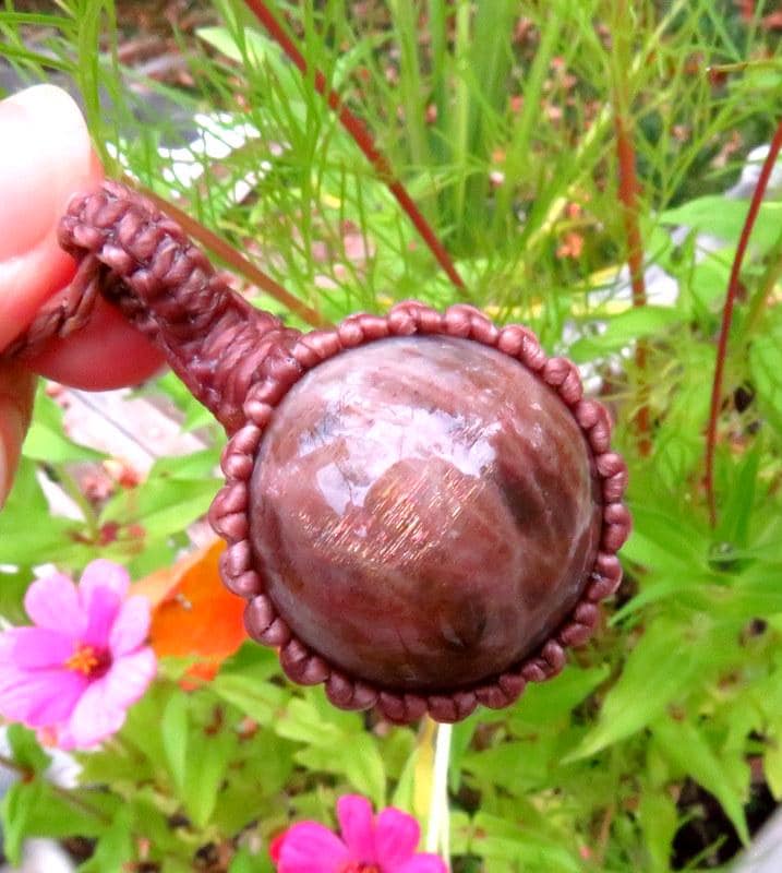 Beautiful Peach Moonstone sphere necklace (Golden Shine Sunstone) - This unique gemstone is absolutely gorgeous! It has a dazzling golden shine / flash that dances across the surface as it catches the light. Very unique and rare find 🌹 (Check out the video where you can really see how much it glows !)