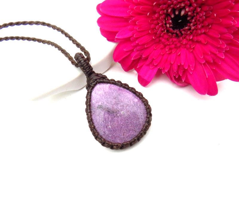 💜CONFIDENCE & PROSPERITY 💜Beautiful and rare Purpurite macramé necklace - Vibrant purple - a rare find ! This would make a special Gift for Her, for the crystal or rock collector and definitely perfect for anyone who loves the color purple 💜