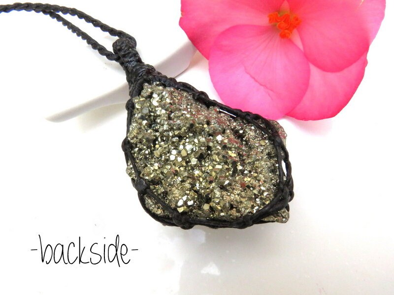 🙏SELF - CONFIDENCE 🙏 Gorgeous Pyrite druzy crystal macrame necklace - This incredibly beautiful gold Pyrite crystal flashes and twinkles in the light - super chic and eye-catching ! Prettier in person!✨