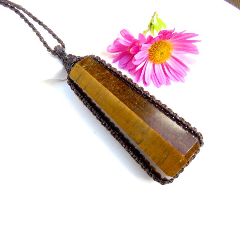 This listing is for a fantastic Tiger Iron crystal point macrame necklace - Gorgeous chatoyant golden tigers eye and metallic hematite - Deep, rich and earthy with a smooth and shiny polish. A very significant piece of Tiger Iron ! Would look great worn with a long or short cord ✨