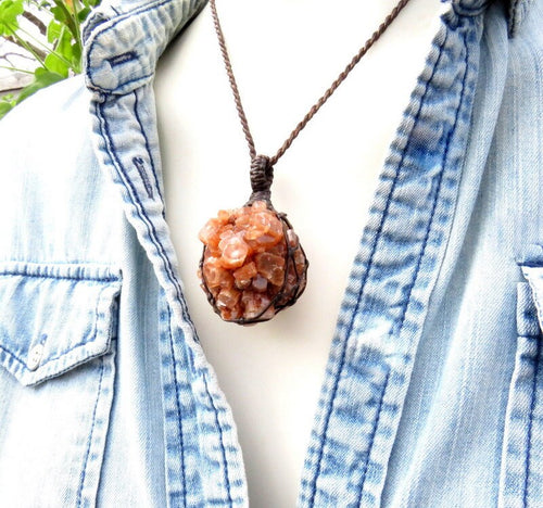 Pretty Aragonite Crystal necklace - gorgeous cluster of peachy brown crystals - very shiny and gemmy - a crystal that demands many hours of gazing ! You will receive the exact crystal in photos #1-6 and the video.
