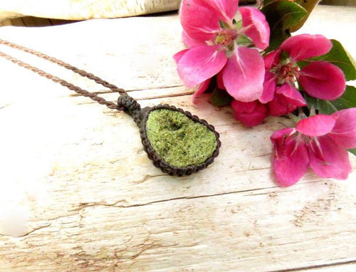 Green Epidote Crystal Macrame Necklace: Boho Healing Jewelry