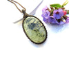 Prehnite pendant is 5.1 cm long (excluding the loop) and 3.2 cm wide