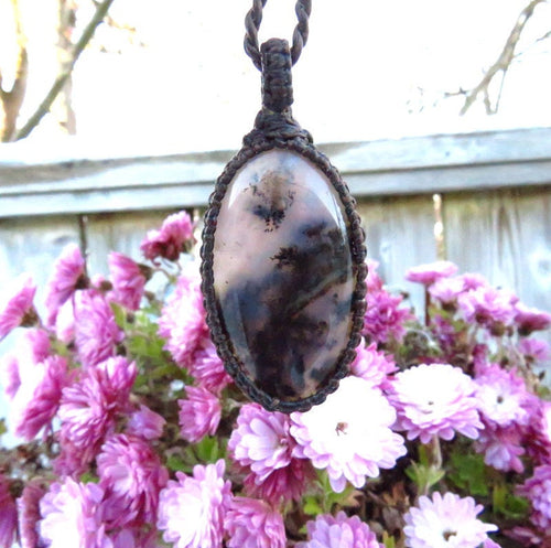 Enchanting 💜 Purple Sage Agate Necklace - translucent mauve with black plumes - resembling pressed flowers - beautiful, shiny polish , classic teardrop shape.