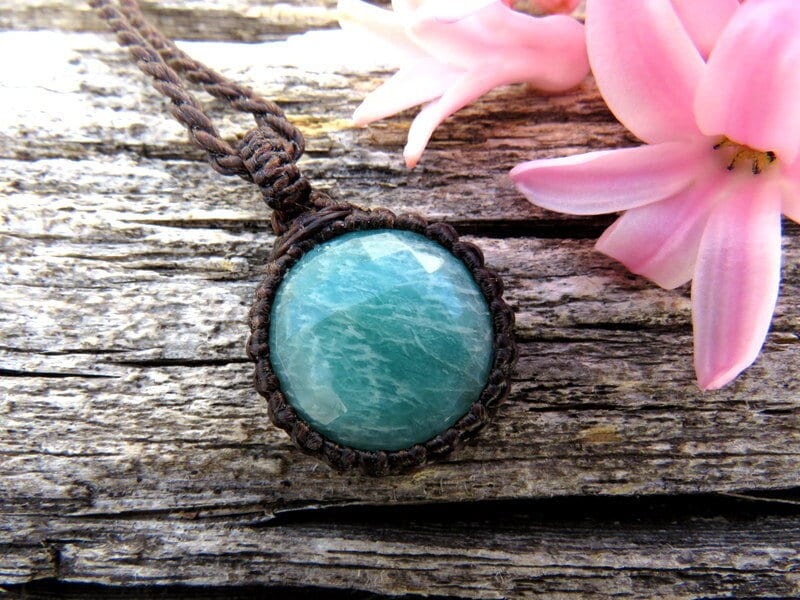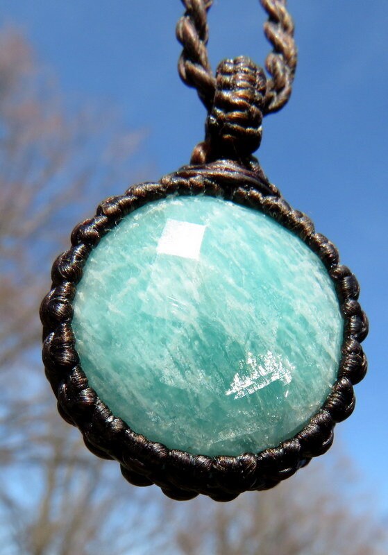🌺COMMUNICATION & SELF LOVE 🌺VERY nice quality Amazonite macrame necklace - light green, classic round shape and a special facet cut that has a nice twinkle in the light - A great gift for the 'warrior' woman in your life !
