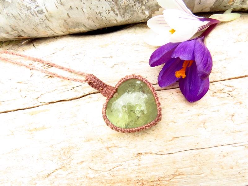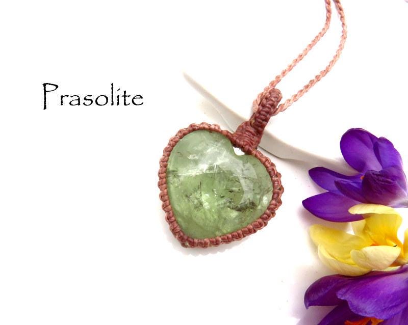COMPASSION * PEACE OF MIND * CONNECTION ๐ Beautiful Prasolite crystal necklace - this heart shaped Prasolite is from Brazil. Prasiolite is a variety of green Quartz that is mainly found in the Minas Gerais region of Brazil. The color is a gorgeous, soft green with a magical world inside ! Although this gem can be formed naturally, it is commonly replicated by heating or irradiating regular Amethyst (Quartz). Natural Prasiolite displays a soft, sage green hue, whereas treated Prasiolite showcases a deeper, vibrant green colour.