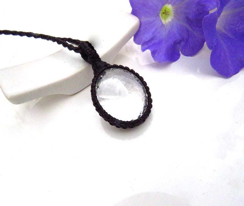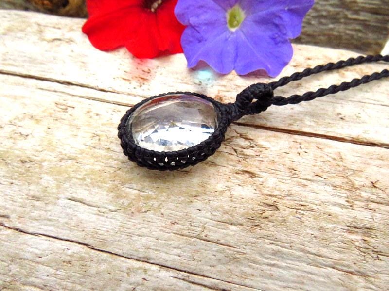 Crystal Clear Quartz macrame necklace - beautiful Quartz crystal with a facet cut that twinkles in the the light - PURE energy in an elegant and earthy design ✨