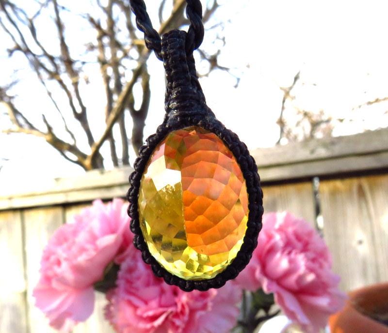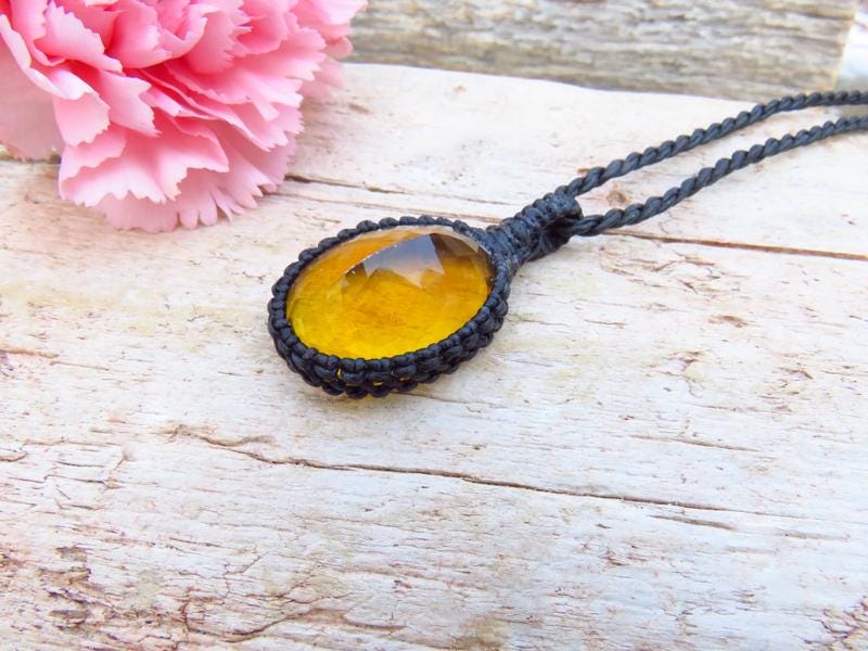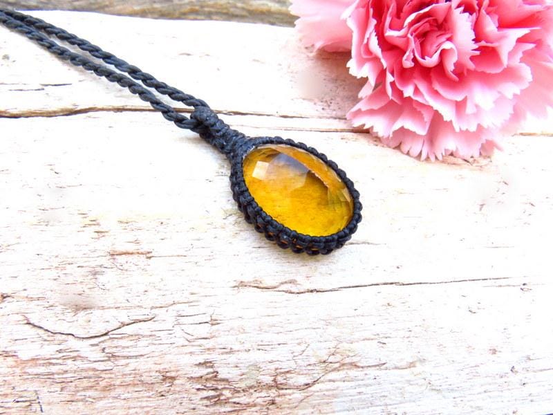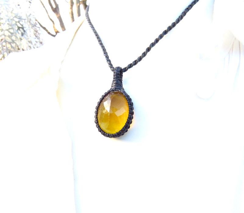 Breathtaking Yellow Fluorite crystal macrame necklace - a gorgeous golden yellow Fluorite crystal - a warm and cheery yellow and a beautiful, twinkling facet cut 💛💛