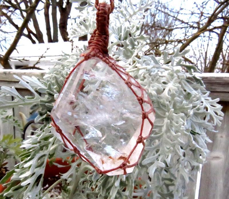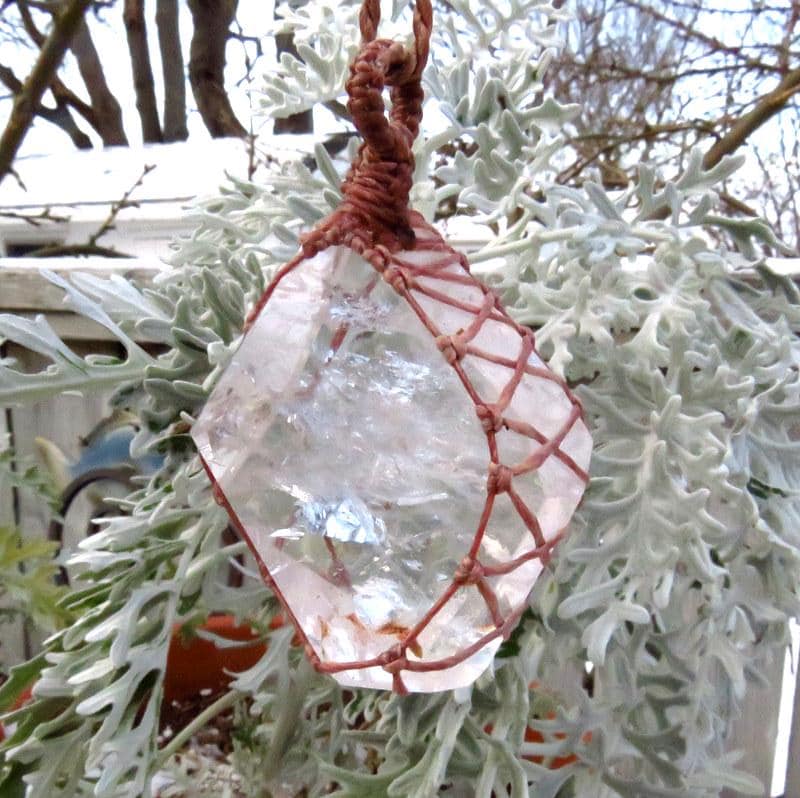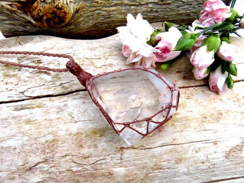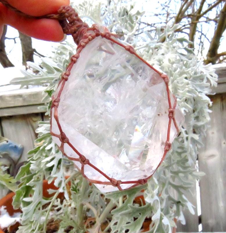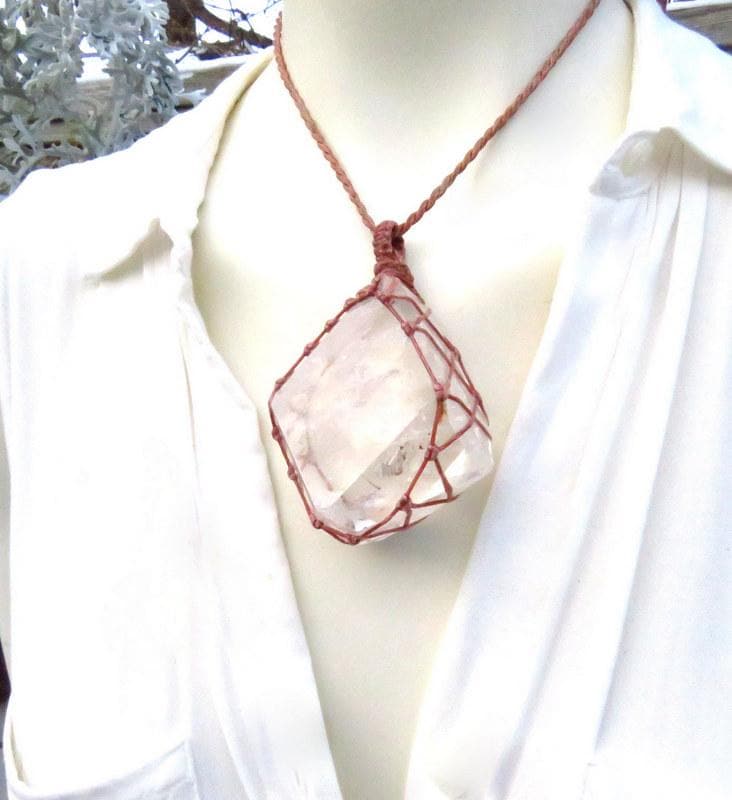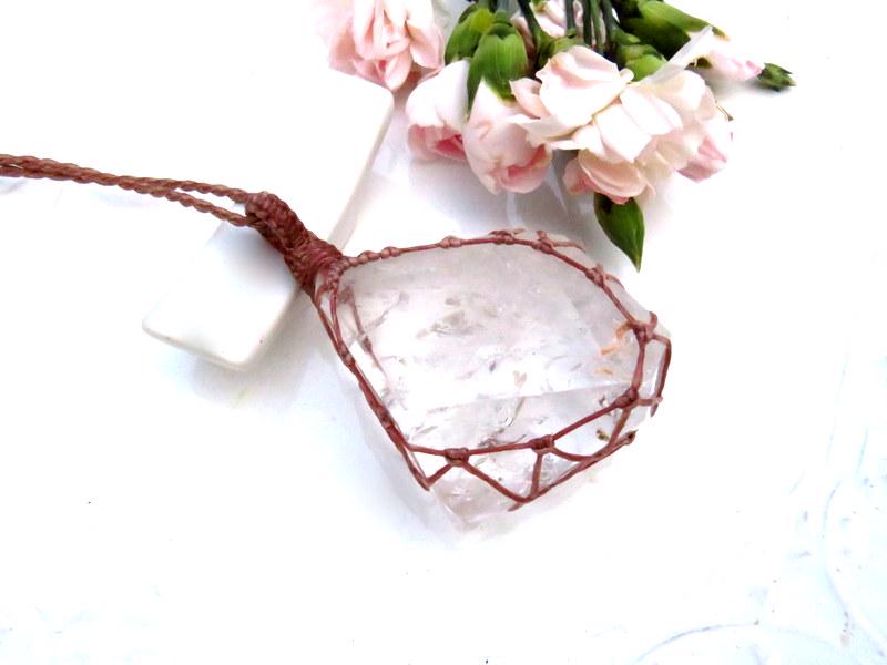 Materials: quartz, crystal, quartz crystal, waxed cord.