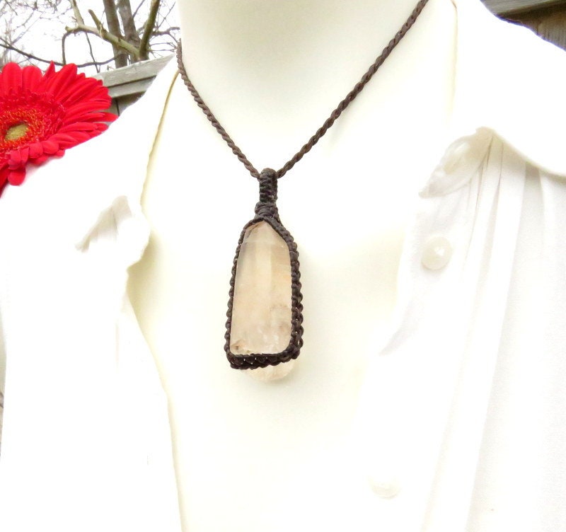 Materials: quartz, crystal, quartz crystal, lemurian, waxed cord, lemurian quartz.