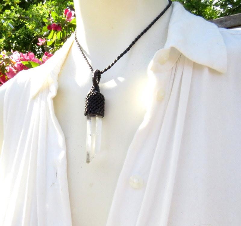 Materials: quartz, crystal, quartz crystal, lemurian, waxed cord.