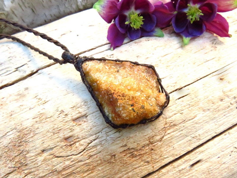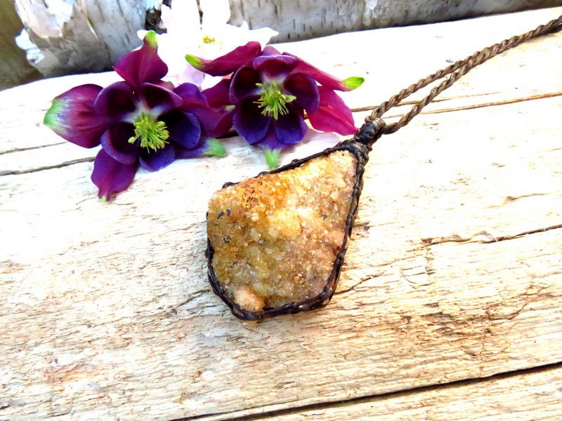 Materials: quartz, crystals, crystal, quartz crystal, druzy quartz, druzy, waxed cord.