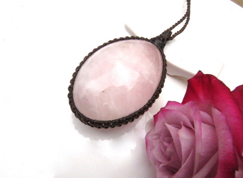 💕SELF-LOVE, COMPASSION & POSITIVE ENERGY💕Soft pink Rose Quartz macrame necklace - the prettiest pink the seems to 'glow' with beautiful inclusions - An important stone for helping us to raise our vibrations of love and compassion - for ourselves and others. Rose quartz is the traditional birthstone for the January babies. You will receive the exact stone in photos 1-6 and the video.