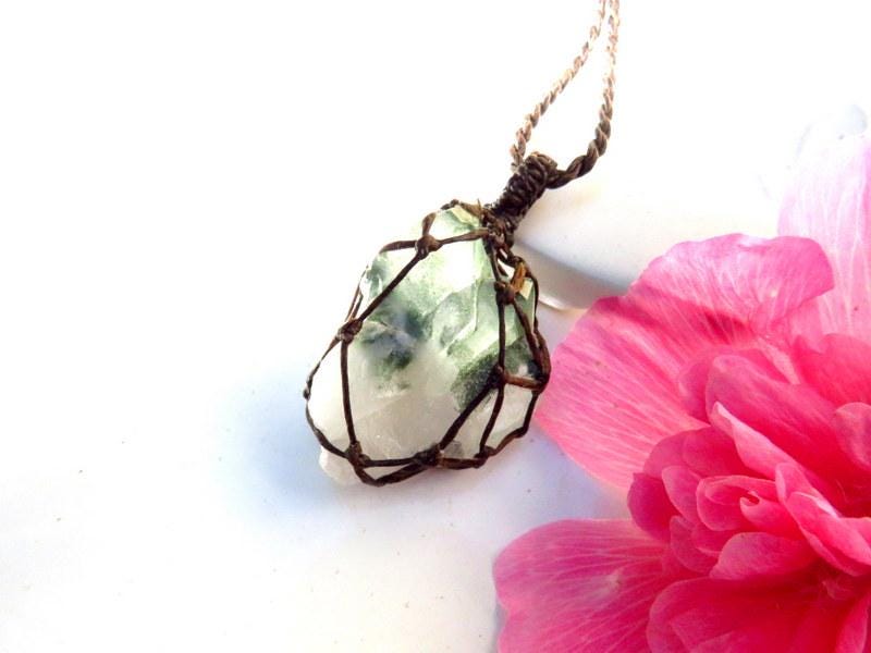 Mystical, magical and rare Chlorite Quartz macrame necklace - This crystal cluster has inclusions of deep green Chlorite - a precious beauty. 💚