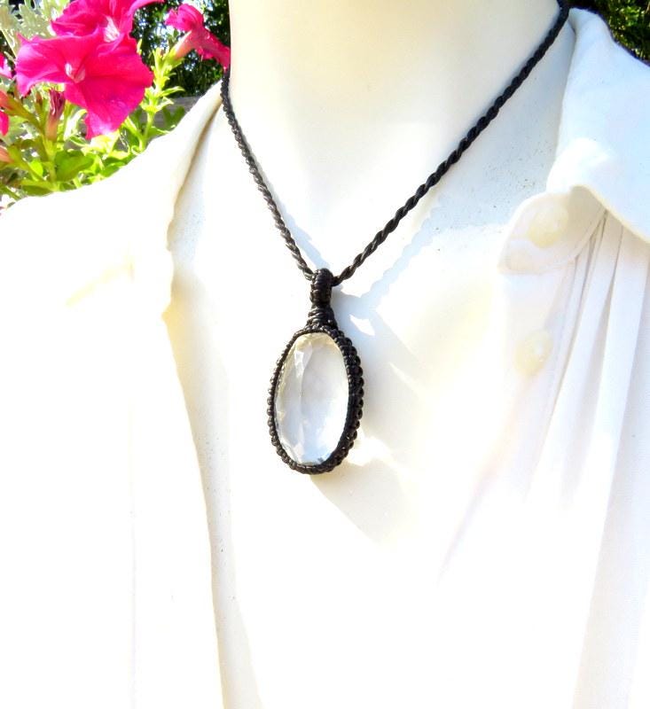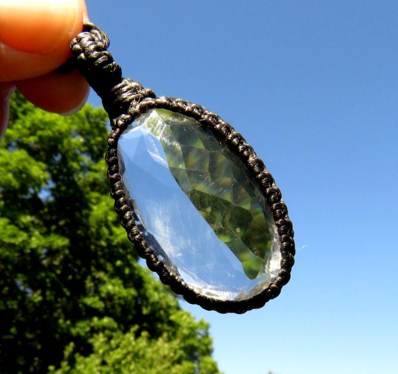 Crystal Clear Quartz macrame necklace - beautiful Quartz crystal with a facet cut that twinkles in the the light - PURE energy in an elegant and earthy design ✨