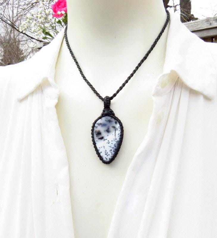 🌱GROWTH & CHANGE 🍂 A simply stunning Dendrite Opal macrame necklace - One of our best selling gemstones - This piece of dendrite opal, with its winter-y mysterious landscape, is one of mother nature's masterpieces ✨ You will receive the exact piece in photos #1-7 and a video is coming soon!