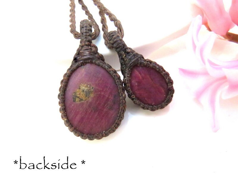 Materials: ruby, cabochon, gemstone, semiprecious stone, waxed cord.