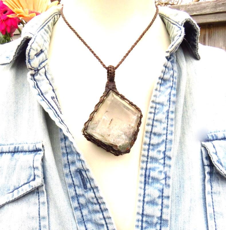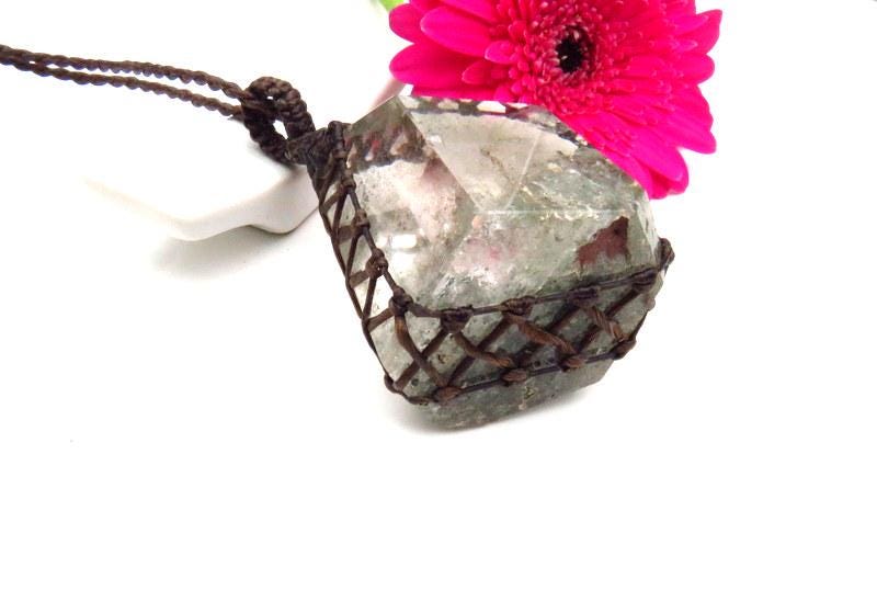 Wow ! Here we have another stunning freeform Shamanic Dream Quartz healing crystal necklace - Quartz full of mineral inclusions - so full of depth and mystery! A very generous size. Also known as Lodolite, Landscape Quartz or Garden Quartz - this distinctive crystal is revered for its captivating inclusions and unique visual narratives. The most enchanting feature of Shamanic Dream Quartz lies in its internal world, where dream-like inclusions, often resembling scenic vistas, underwater scenes, or landscapes, can be observed. These internal formations are believed to enhance the crystal's ability to aid in meditation, dreamwork and spiritual journeys. As you gaze into the crystal, it's as if a portal to another realm ✨✨✨ *includes rainbow prisms too ! 🌈