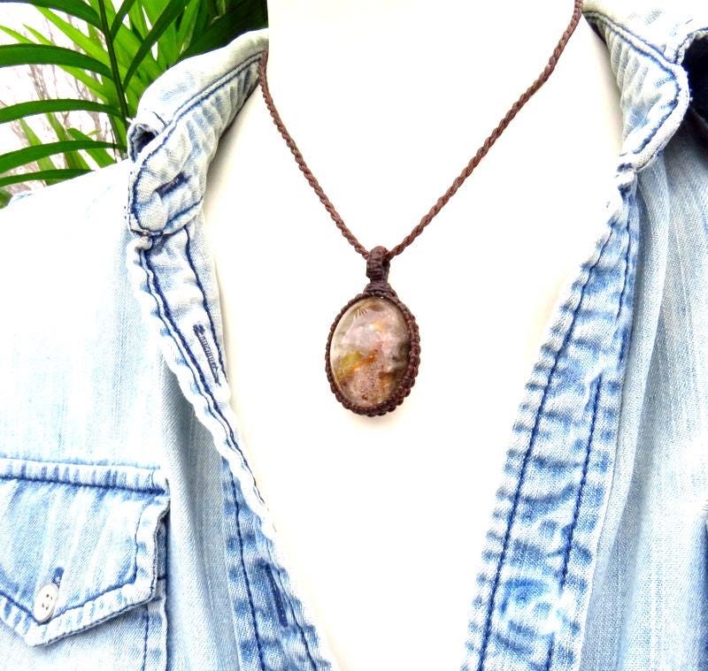 Materials: gemstones, garden quartz, quartz, waxed cord, shamans stone, lodolite.