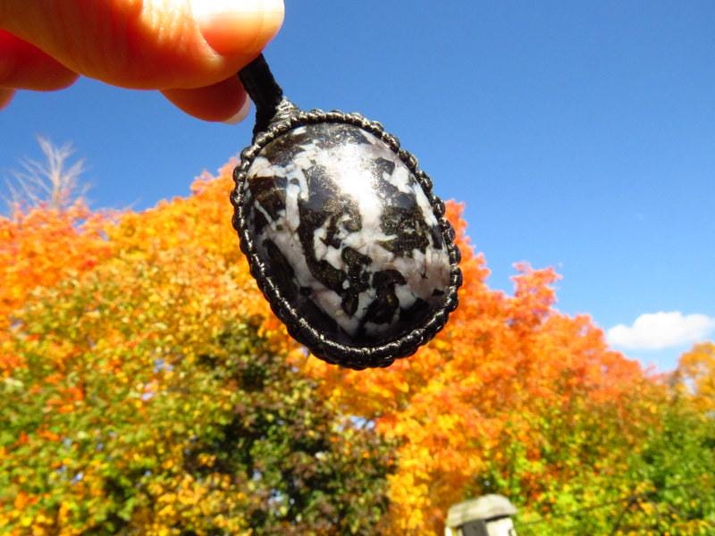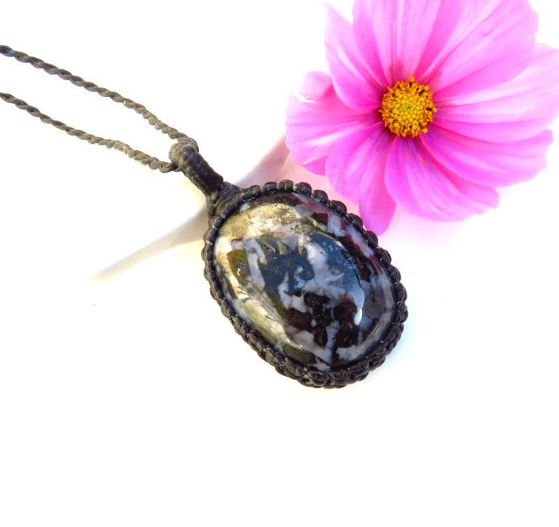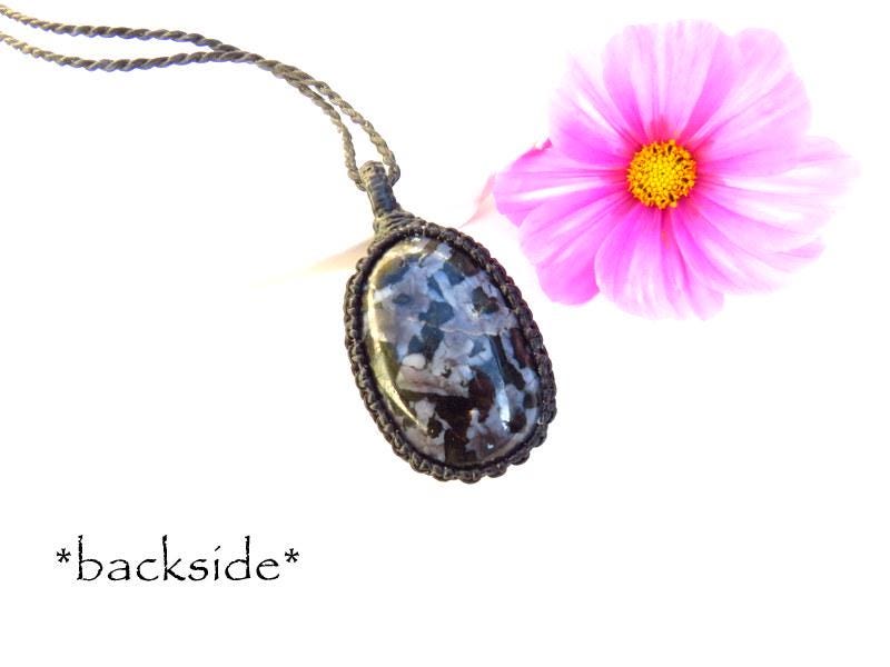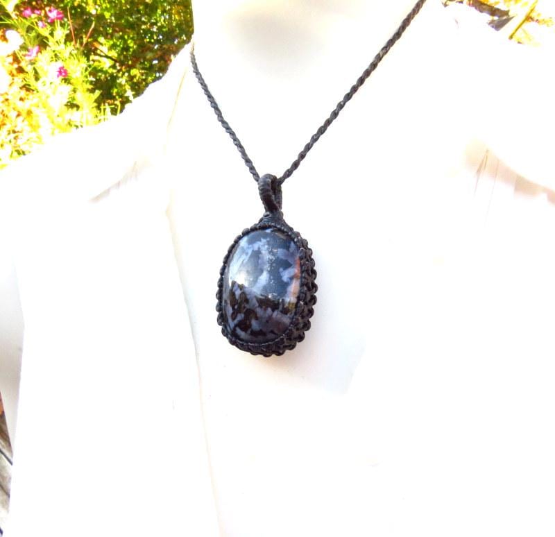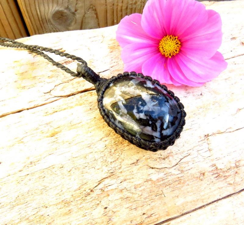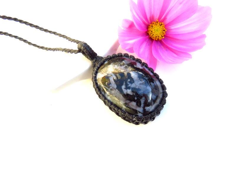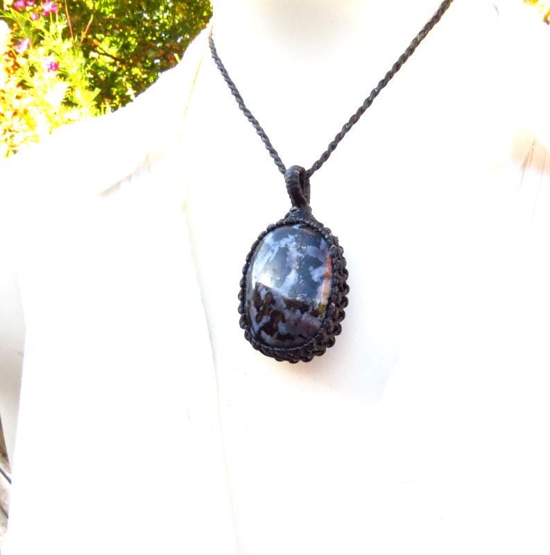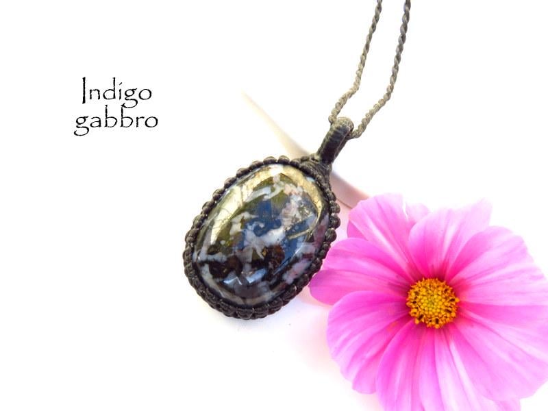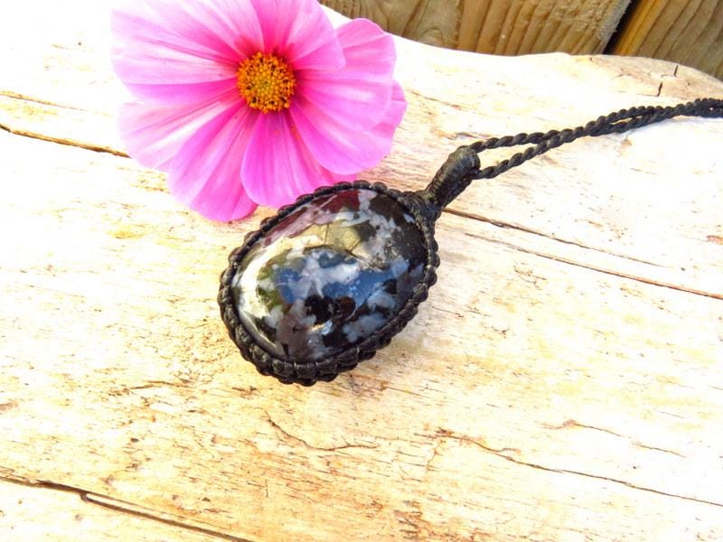 🌹💜🖤THE STONE OF INTENTION, GOALS & ASPIRATIONS- Beautiful Indigo Gabbro crystal macrame necklace - also known as 'Merlinite' or 'Mystic Merlinite' - this stone is black with grayish blue pattern- amazing Indigo Gabbro !