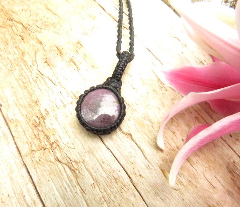Flashy Ruby macramé necklace - Gorgeous, pink fuchsia with a beautiful flash! Dainty size !