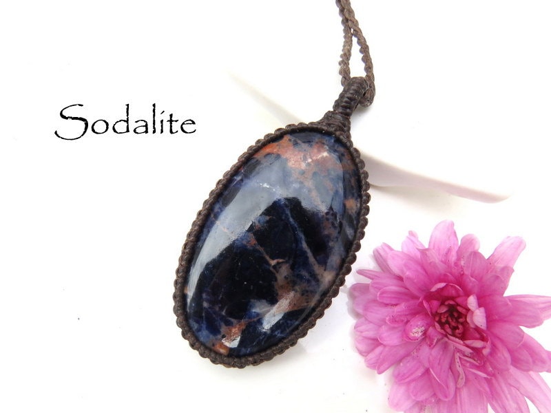 ✨COMMUNICATION, PEACE & SPIRITUAL GROWTH✨Large and lovely Sodalite macrame necklace - Deep denim blue and grey - classic oval shape . You will receive the exact stone in photos #1-7 and the video.