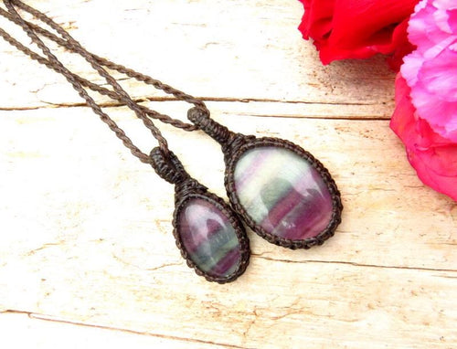 Materials: fluorite, gemstones, waxed cord, semiprecious gemstones, healing stones.