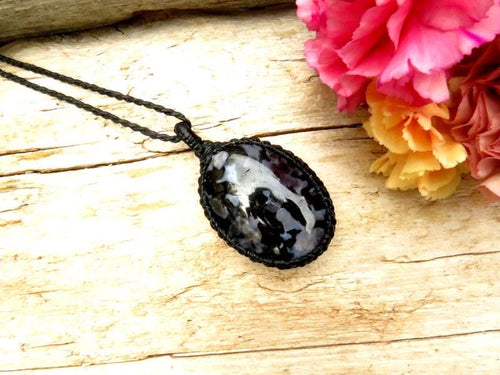 ππ€THE STONE OF INTENTION, GOALS & ASPIRATIONS- Beautiful Indigo Gabbro crystal macrame necklace - also known as 'Merlinite' or 'Mystic Merlinite' - this stone is black with grayish blue pattern- amazing Indigo Gabbro !