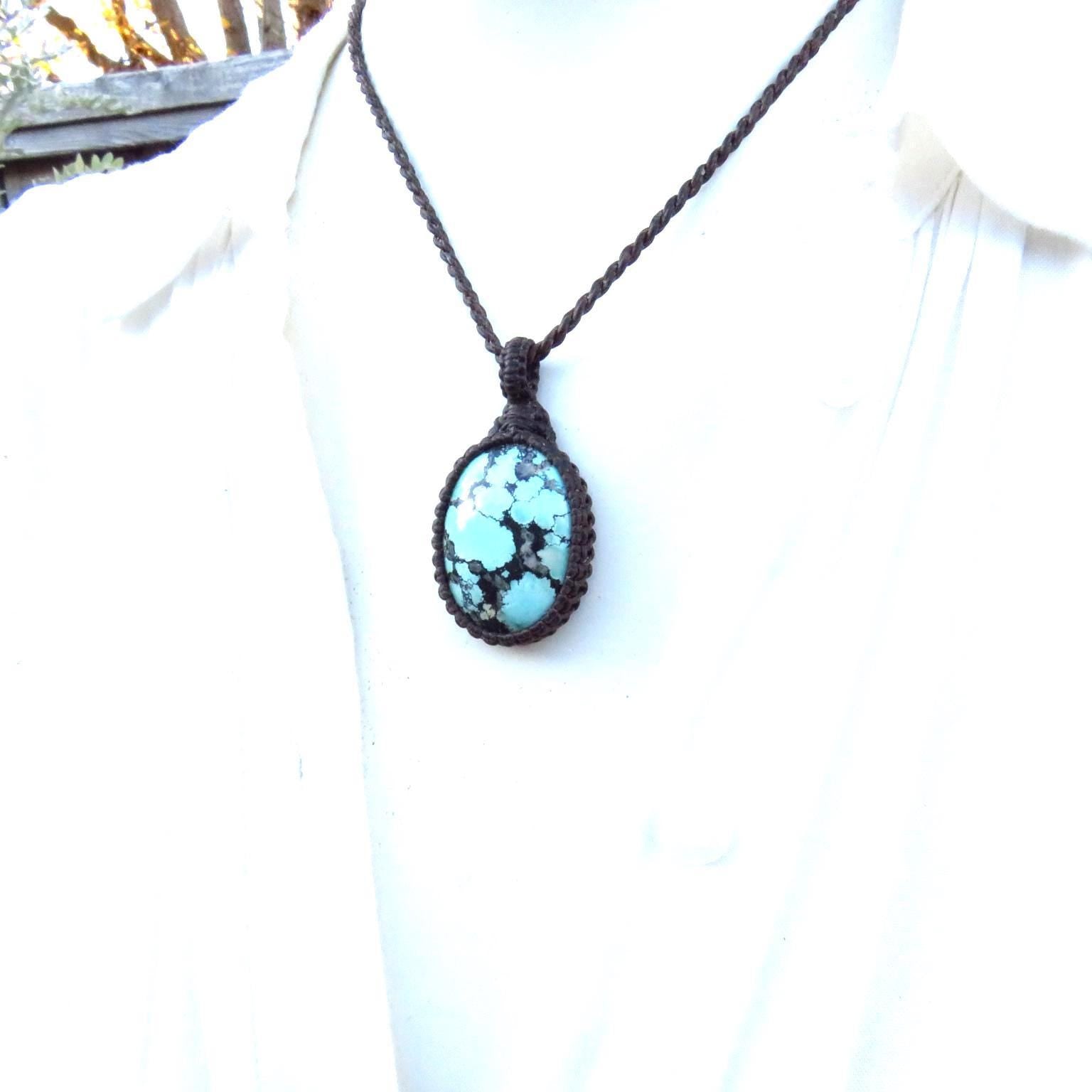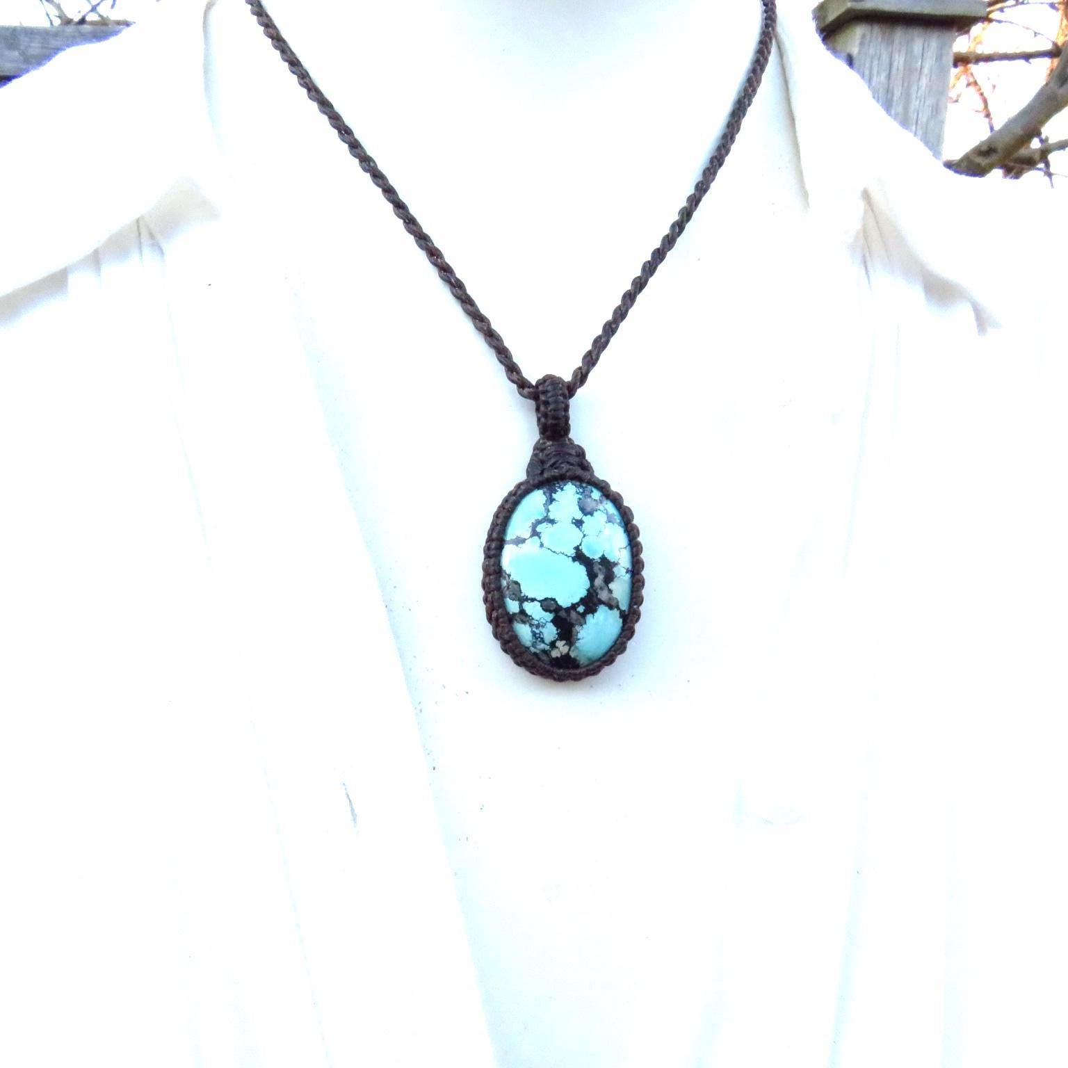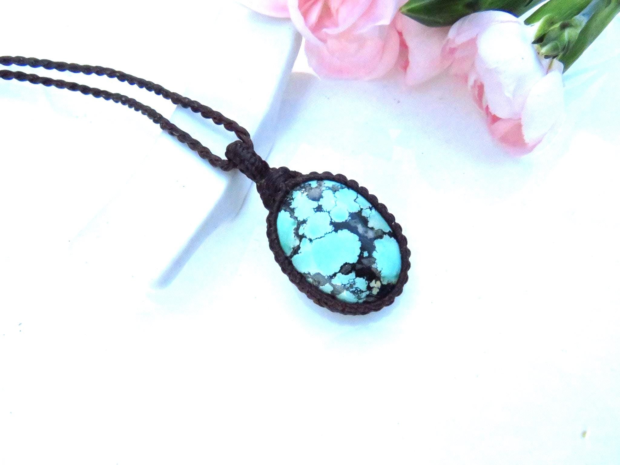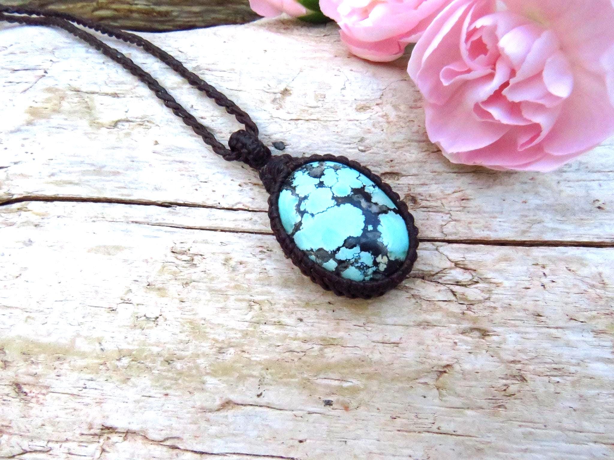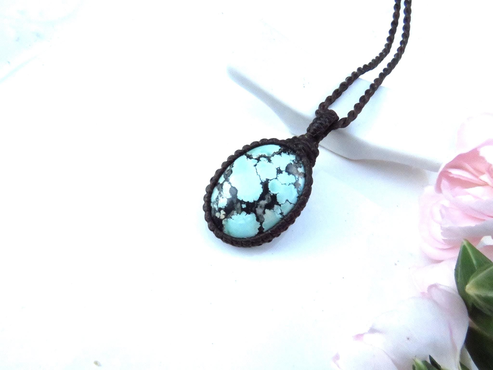 Cloud Mountain Turquoise macrame necklace, Hubei Turquoise jewelry