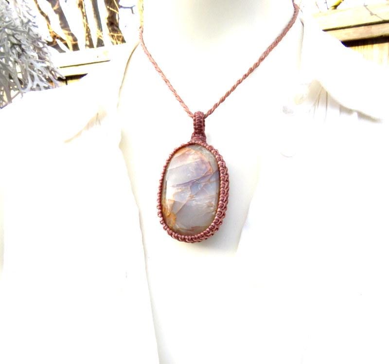 == We wrap or 'set' our semiprecious stones using the art of knot-tying or ' macrame '
