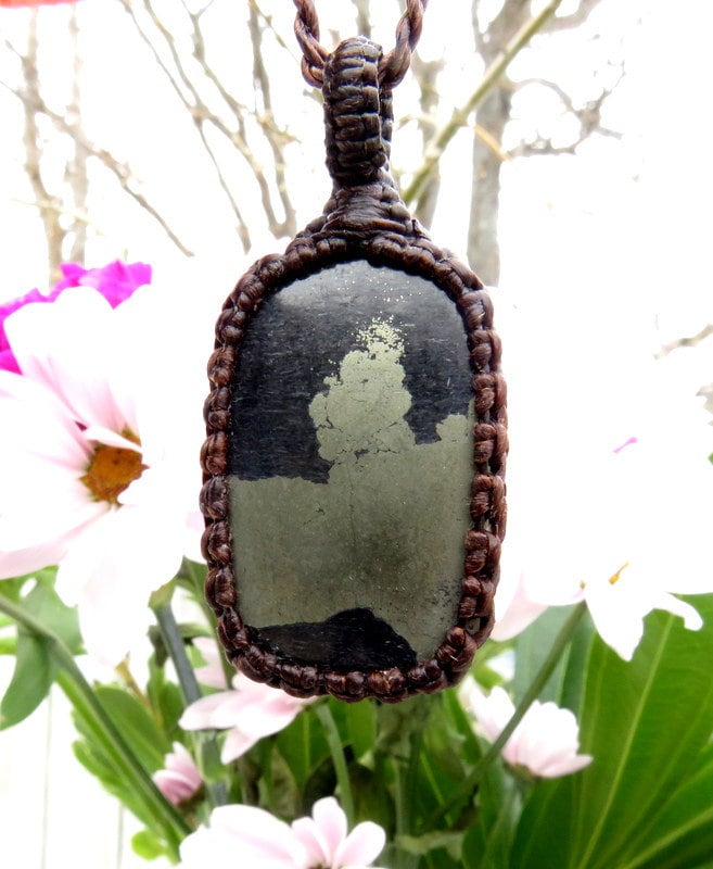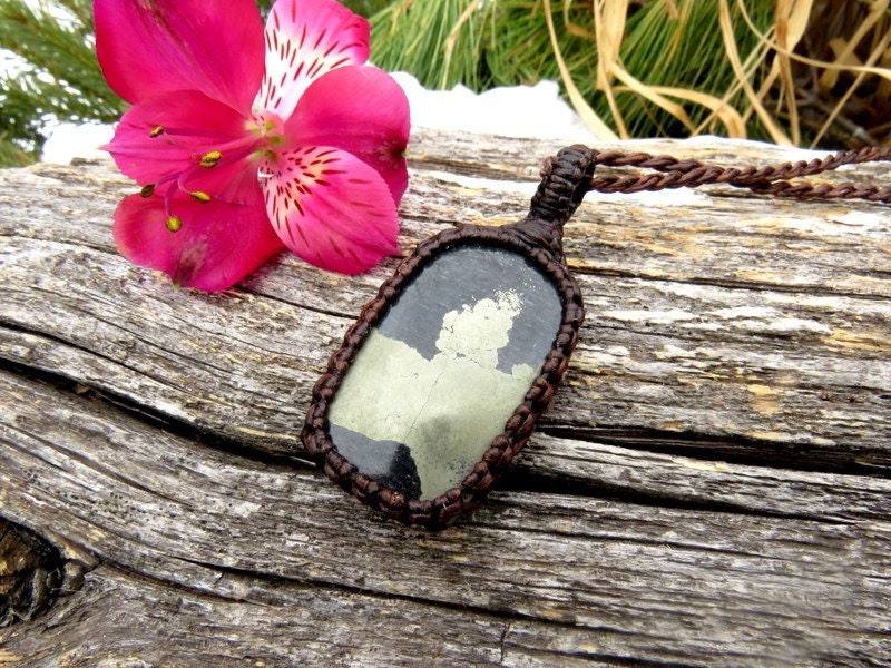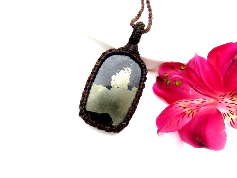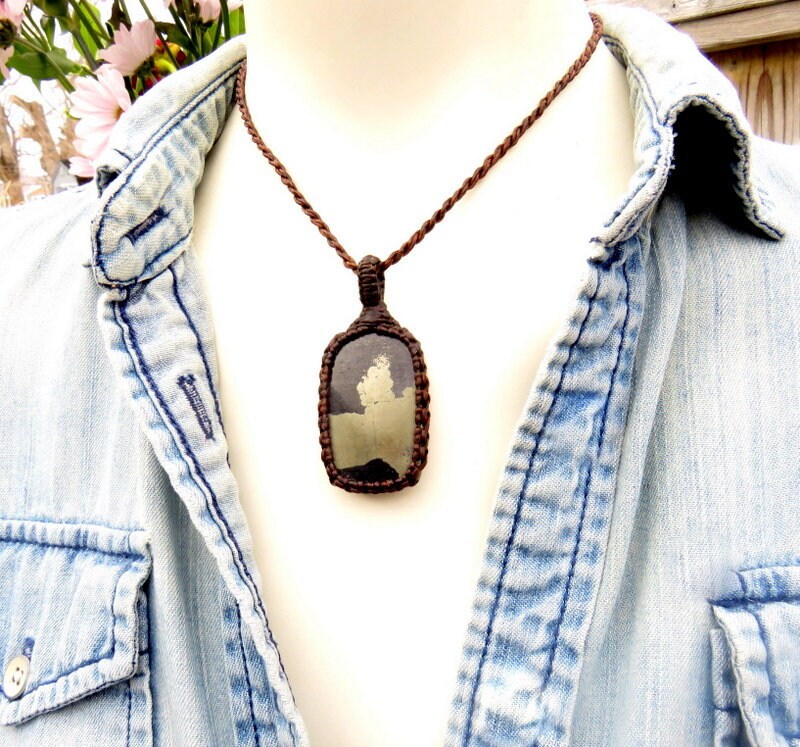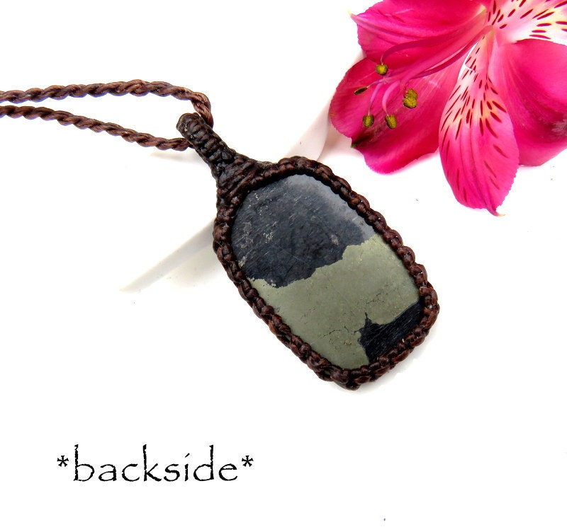 This listing is for a beautiful Apache Gold macrame necklace - 'Apache Gold, ' also known as 'healers gold, is gold Chalcopyrite in black Schist - such an alluring piece !
