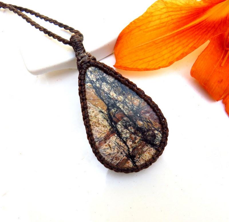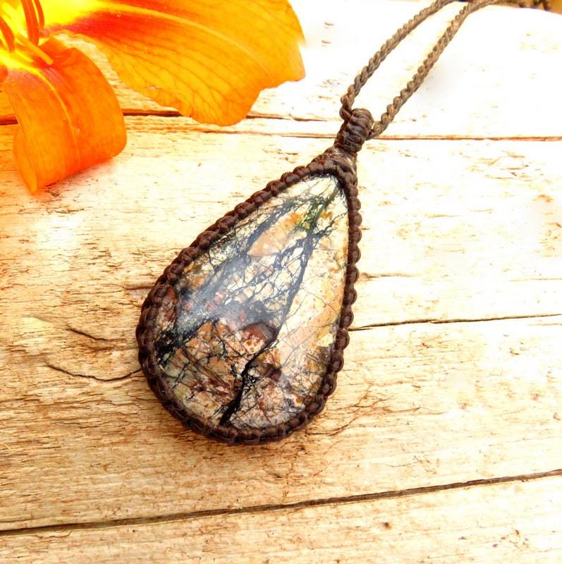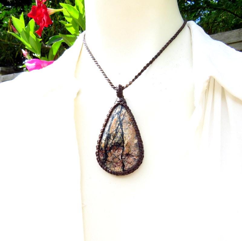 Unique Jasper macrame necklace - This one of a kind jasper is earthy and captitvating ! Bold, abstract patterns that are truly mother nature's artwork 🎨