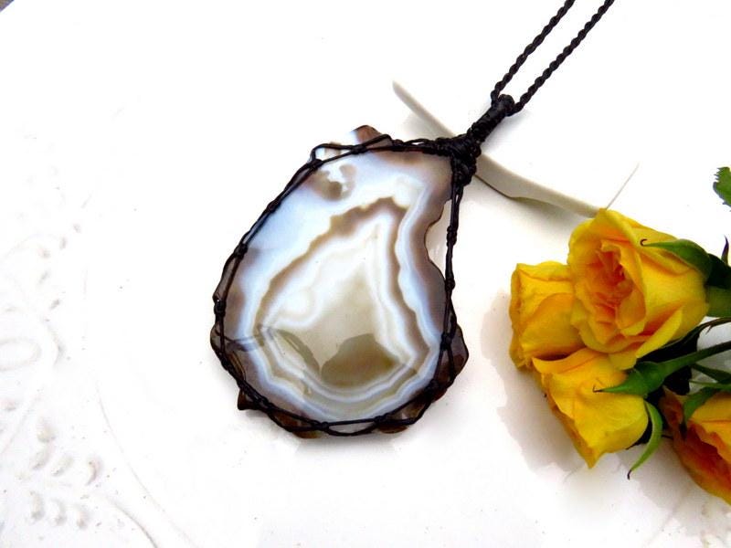 Intriguing and UNIQUE Sardonyx gemstone necklace - Generous size Sardonyx with spectacular banding - an elegant and earthy statement piece !
