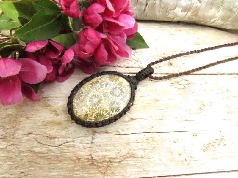 Materials: agate, fossil, waxed cord, fossil coral, agatized coral.
