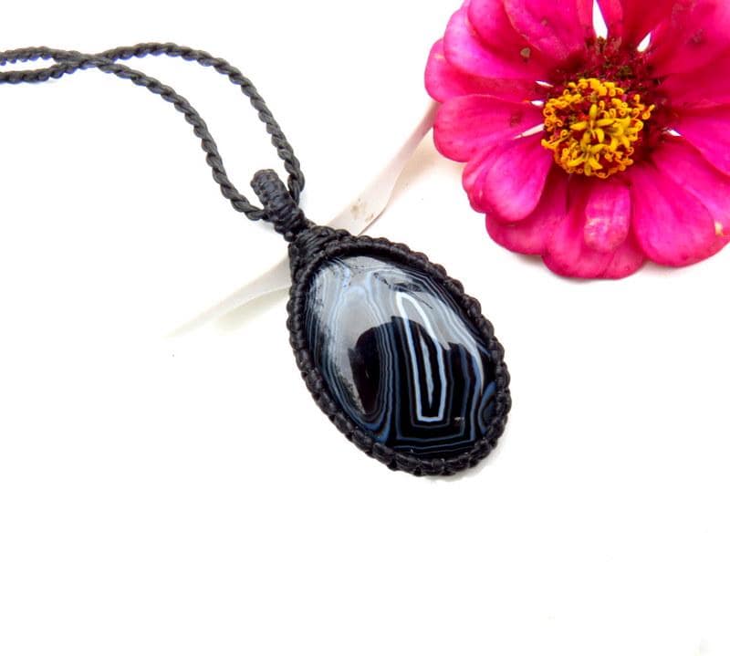 Exceptional Sardonyx gemstone necklace - a very unique Sardonyx gemstone with mesmerizing banding in classic black, gray and brown ! You will receive the exact stone in photos #1-7 and the video. Sardonyx is a best seller in our shop 🖤✨🖤