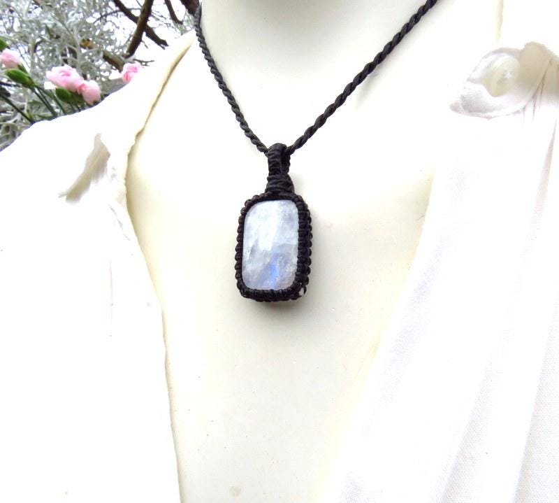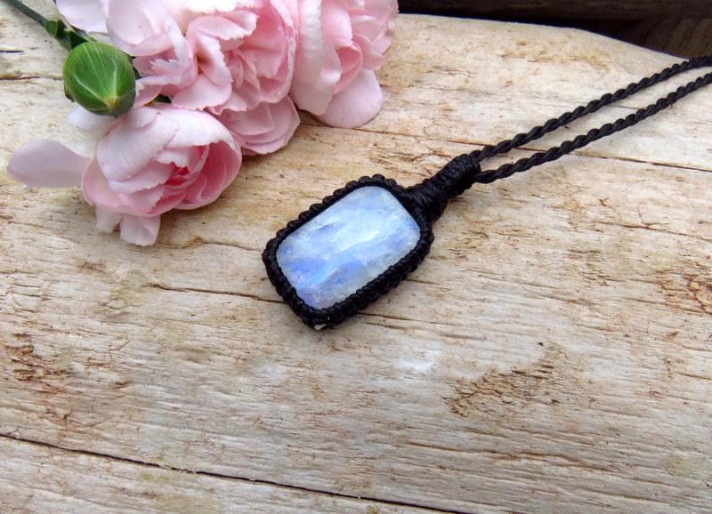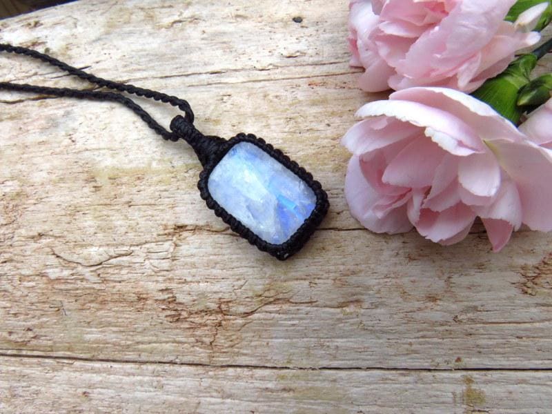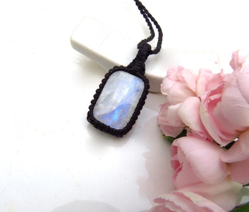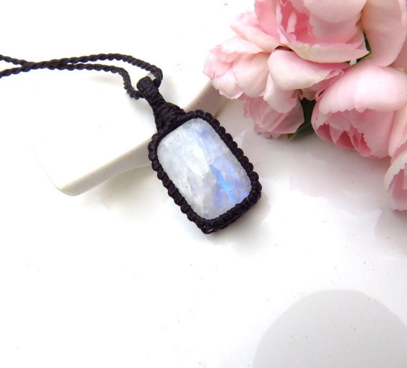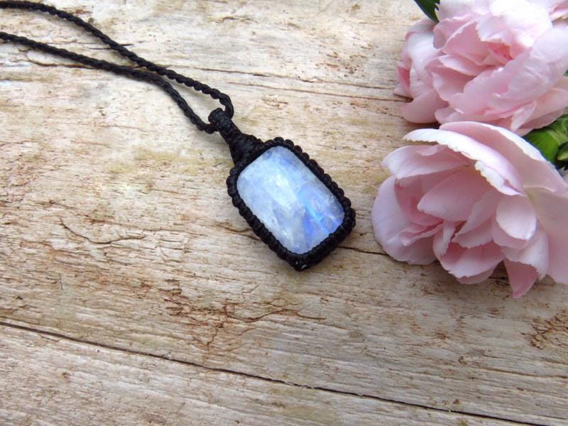 ✨LOVE, COMFORT & FORGIVENESS✨ Superb quality - Dainty, blue flash Moonstone macrame necklace - 🌈 Moonstone makes a great gift for the important WOMAN in your life!
