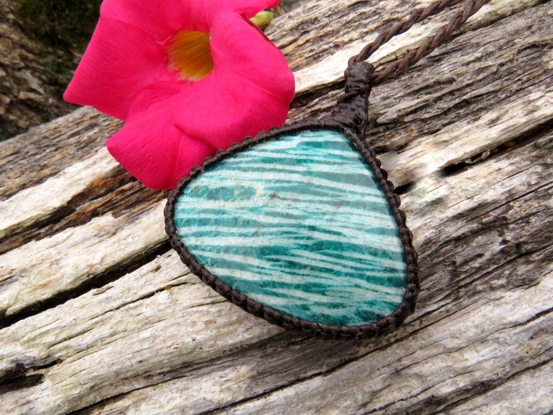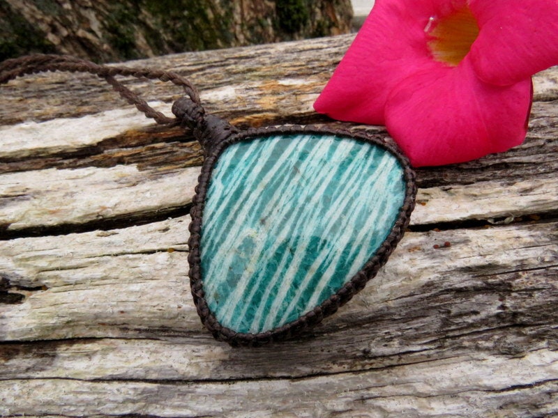 🌺VERY nice quality Amazonite macrame necklace - deep green stripes - classic teardrop shape - A great gift for the 'warrior' woman in your life ! You will receive the exact piece in photos #1-6. and the video. All of our Healing Stones include a description of their healing properties✨