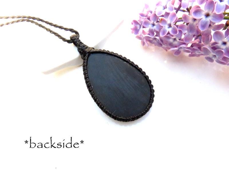 Gorgeous, large black Onyx druzy macrame necklace - Jet black with a sparkling druzy cavern - Druzy is a natural crystallization that occurs on a stone- tiny crystals formed through the heating and cooling process of Mother Earth. * You will receive the Onyx in photos #1-6 and the video (model is wearing a similar but different Onyx)