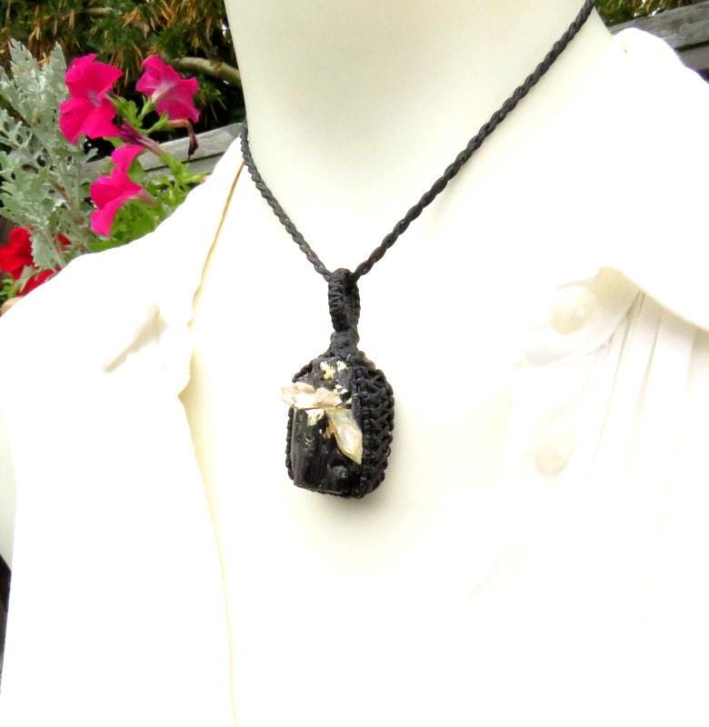 🖤Stunning beauty ! Super quality Black Tourmaline crystal necklace - jet black and sleek natural Tourmaline crystal (Schorl) with pretty silver Albite inclusions. Gorgeous piece - don't miss it ! You will receive the exact crystal in photos #1-7 and the video. 🖤