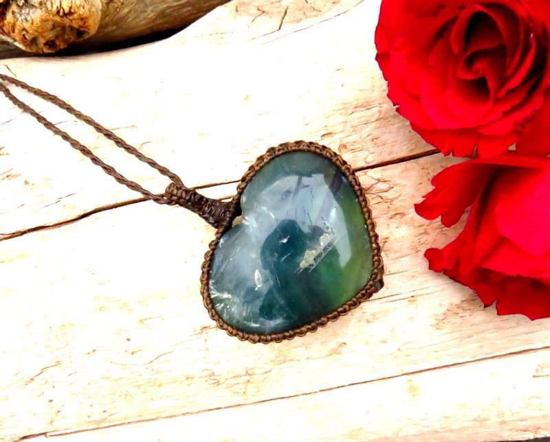 FLOW WITH YOUR TRUTH - Gorgeous and RARE blue Fluorite crystal necklace - the gorgeous colors (blue, green & purple) and the soothing energy make this a great new friend ! And a very generous size in a gorgeous heart shape 💖 In Latin, 'fluorite' means 'to flow' : )