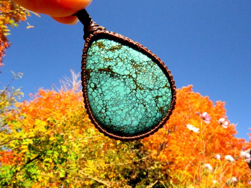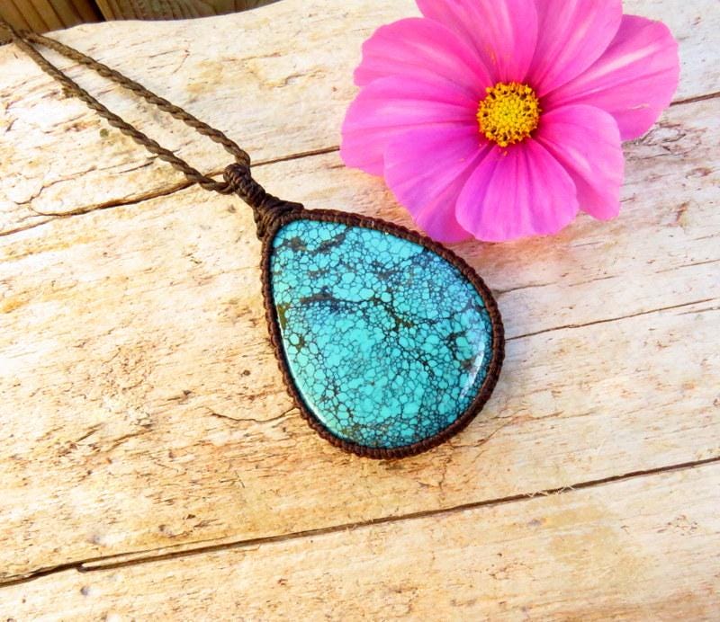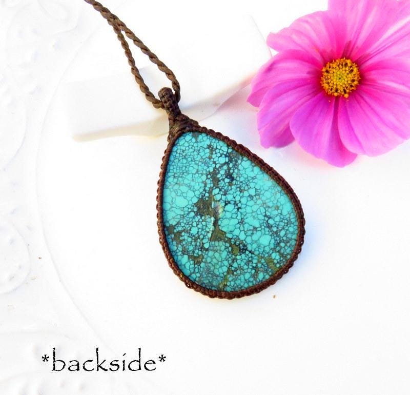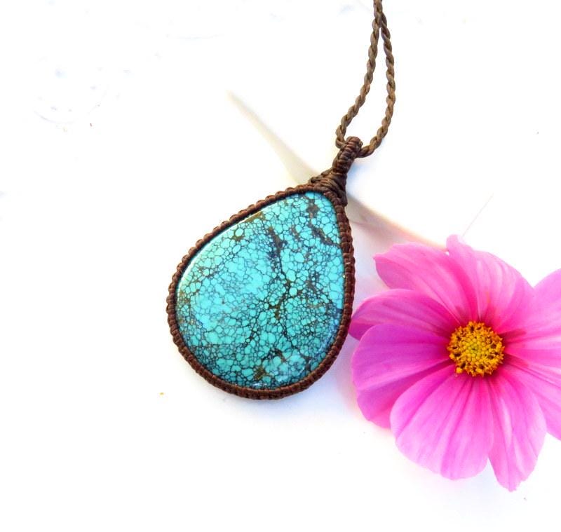 🌹Beautiful Cloud Mountain Turquoise macrame necklace - beautiful color and web patterns ! Cloud Mountain Turquoise comes from a mine in the Hubei Province in central China that has been the most prolific Turquoise mine in Asia.